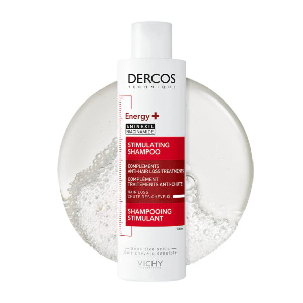 Le shampooing DERCOS TECHNIQUE Energy+ est formulé avec des actifs dermatologiques puissants reconnus pour limiter la chute des cheveux et renforcer le cuir chevelu :